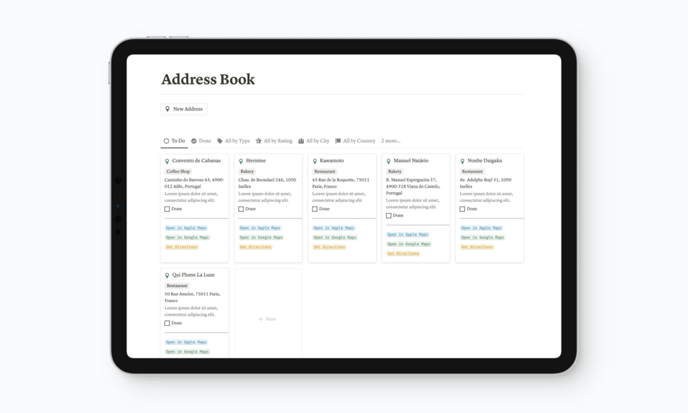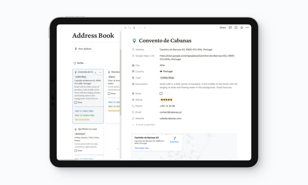Save all your addresses, from your favorites to the ones you want to try. Access their Google Maps page in one click.