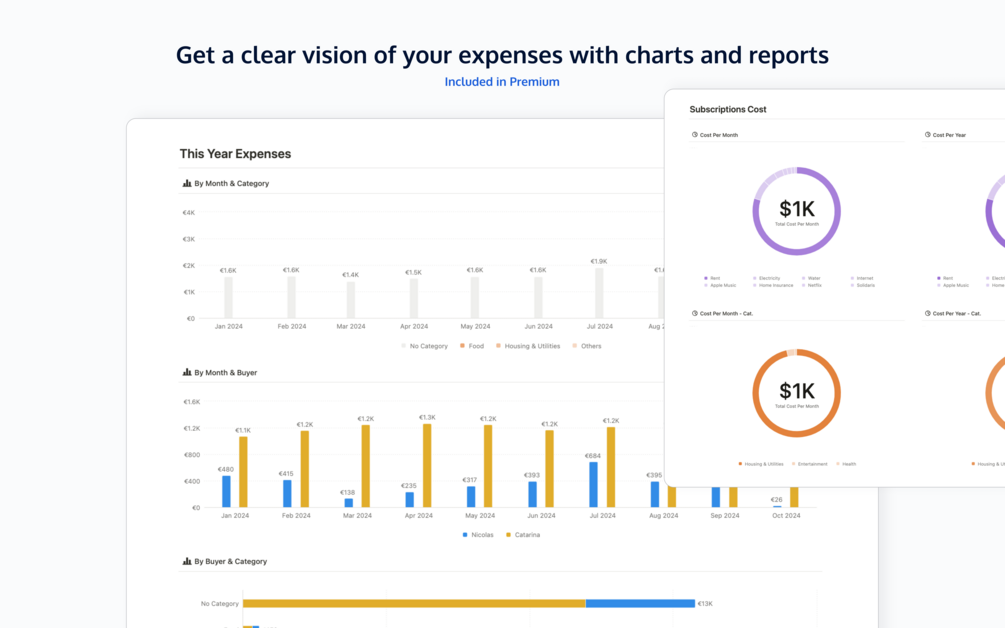 Premium - For couples and roommates who want a complete system to manage every aspect of their common finances.